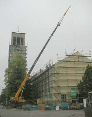 eingerüstet und bekommt einen neuen Fassadenanstrich und ein neues