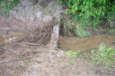 diese beim ersten Gewitterregen am 8.5.2003 mit Schlamm und Steinen vollgeschüttet