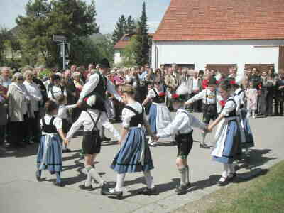 mit Kindergruppe, Volkstanzgruppe und Goaßlschnalzer sowie die Chorgemeinschaft